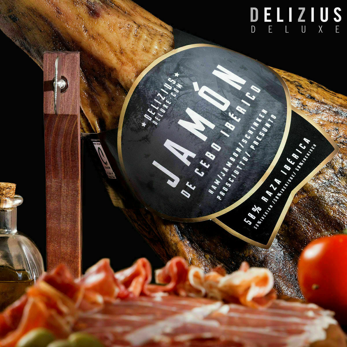 Das Set aus Delizius Deluxe Schinken und Schinkenhalter ist eine hervorragende Kombination, um ein komplettes Ensemble von Qualitätsprodukten der typischen traditionellen spanischen Küche zu genießen. Eine sichere Sache, um mit einem Geschenk maximale Zufriedenheit zu erreichen.