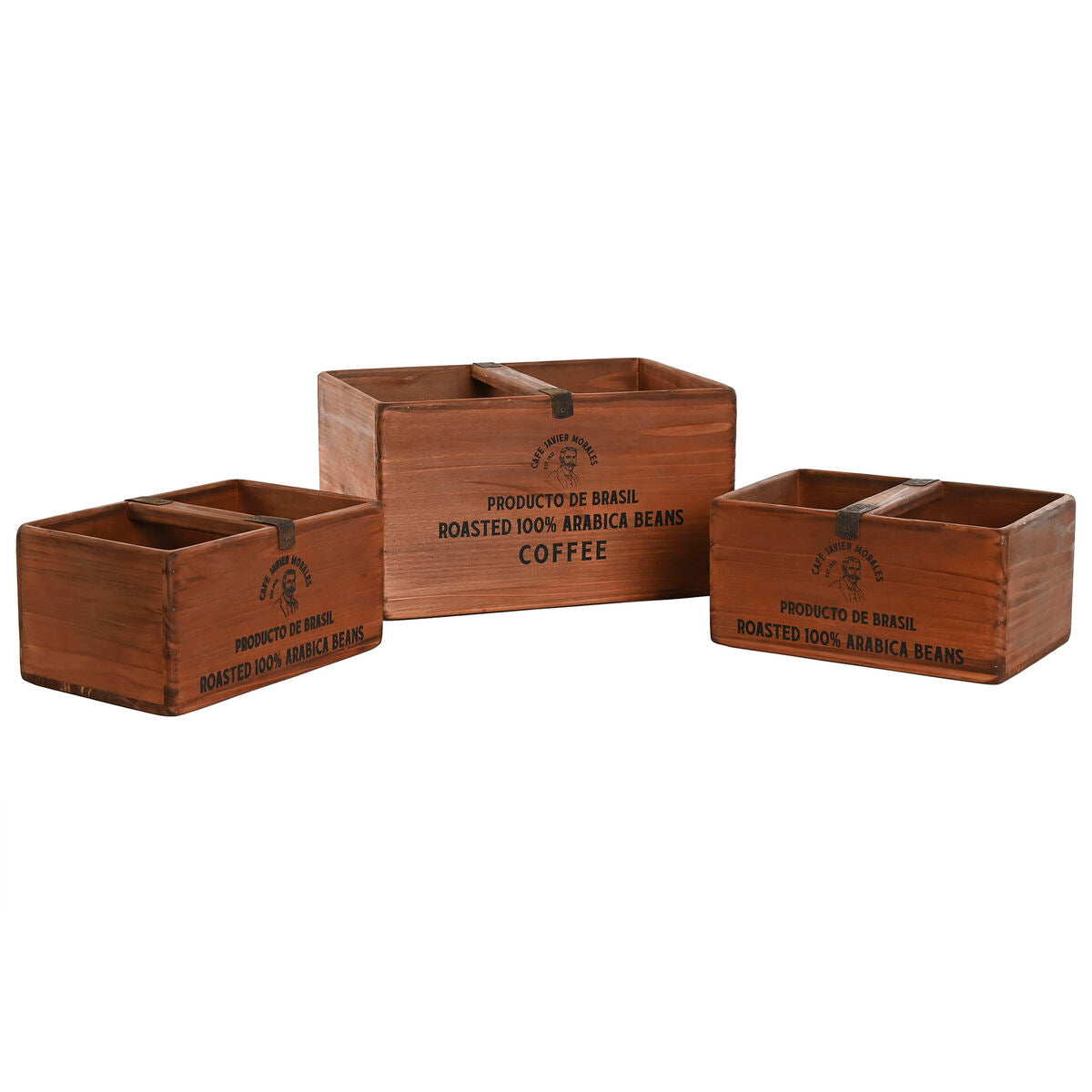 Wenn Sie bei der Einrichtung ihres Heims Wert auf Details legen und bei Produkten, die Ihnen das Leben leichter machen, auf dem letzten Stand sein möchten, dann kaufen Sie Aufbewahrungskästen Home ESPRIT Braun Tannenholz 35 x 25 x 20 cm 3 Stücke zum besten Preis.